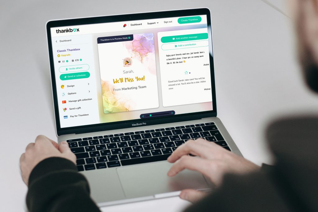 Thankbox is an online group card and gifting platform promoting employee appreciation in the workplace through e-cards, gift vouchers and physical gifts. The target audience are mainly remote or hybrid workers. The brand is fun, upbeat, appealing to a relatively young target audience of office managers, HR professionals and team leaders.